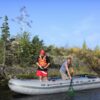 • решил наконец и себе купить лодку. Не всегда ведь на чьейто на рыбалку гонять. Эта понравилась тем что можно и с семьей например отдыхать. Самое важное это прочность ткани. Не припомню сколько раз натыкались на бревна, коряги но лодка держится. Борты широкие, вода вообще не попадает. Дополнительно положили тент, колеса и еще много всего полезного, сначала даже подумал что перепутали заказ.
