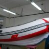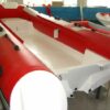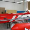 РИБ АЭРО Комета 420. Жесткий стеклопластиковый реданированный корпус обеспечивает прекрасную курсовую устойчивость и уверенное прохождение поворотов. Высокая остойчивость позволяет безопасно и комфортно стоять, и перемещаться по палубе. Корпус состоит из трех частей. Все три детали склеиваются специальным клеем и образуют объемную, жесткую конструкцию. Каждая из этих трех деталей формуется в своей матрице. Внутри находится цельный «П» — образный стеклопластиковый кильсон, обеспечивающий жесткую связь между палубой и днищем.