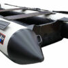 Надувное дно лодки Хантер 335 А Лайт – имеет безкилевую геометрию, это максимально повысило остойчивость лодки в «статике», что в свою очередь позволило человеку спокойно стоять на надувном дне НДНД. Это по достоинству оценят любители спиннинга, которые любят ловить стоя в заброс. Надувное дно крепится к баллонам широкой полосой с двойным контуром, что придает конструкции необходимую жесткость. Само дно НДНД представляет собой замкнутый и независимый герметичный отсек. С внешней стороны надувного дна. установлена специальная жесткая пластина, так называемый «интерцептор», он существенно облегчает выход на глиссирование, и управление лодкой. Конструкция, надувного дна имеет необходимую жесткость и обеспечивает лодке высокие скоростные характеристики, позволяя выходить на глиссирование даже под маломощным мотором.